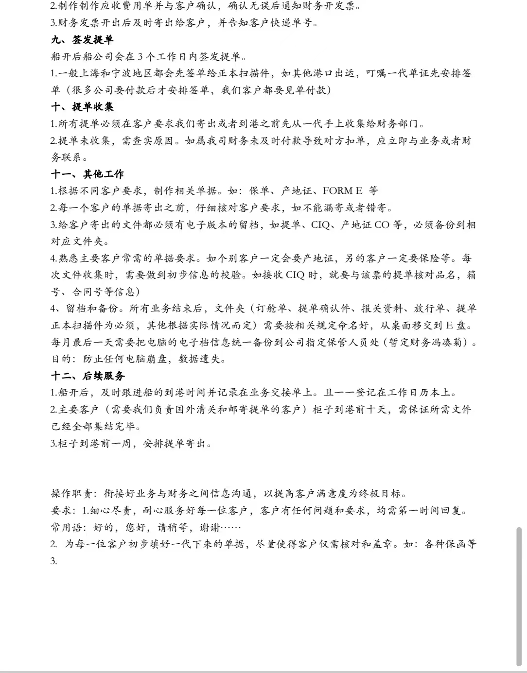 8.等船开然后发提单副本问客人收尾款(看付款方式哈),付货代钱签电放保函,给客人安排电放。